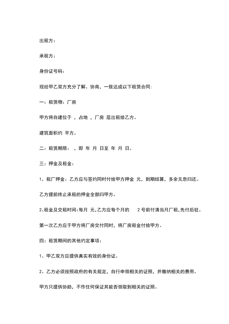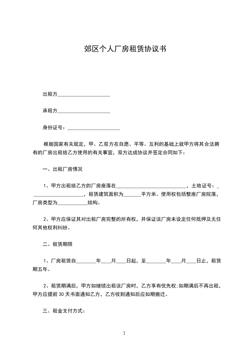 出租方:______(以下简称甲方)