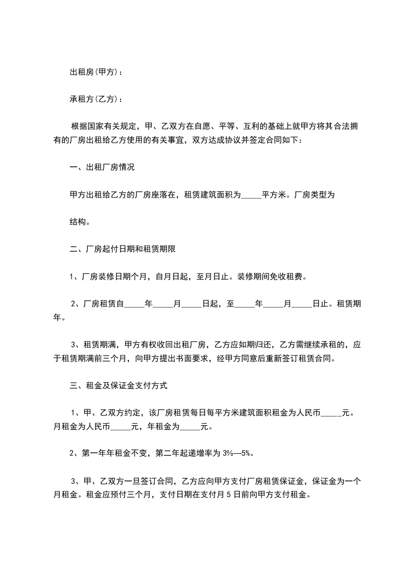 2、房屋租金:每月_____元。按月付款,每月提前五天付款。另付押金_____元,共计______元。