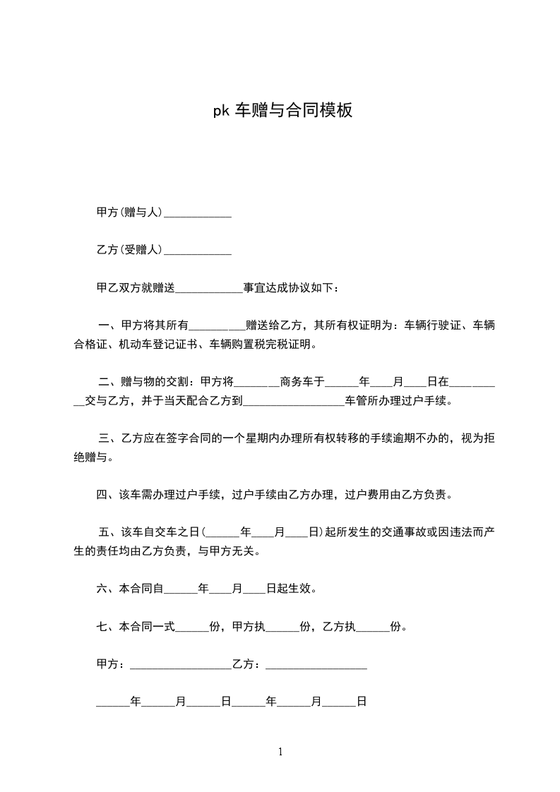 二、赠与物的交割:甲方将________商务车于______年____月____日在__________交与乙方,并于当天配合乙方到__________________车管所办理过户手续。