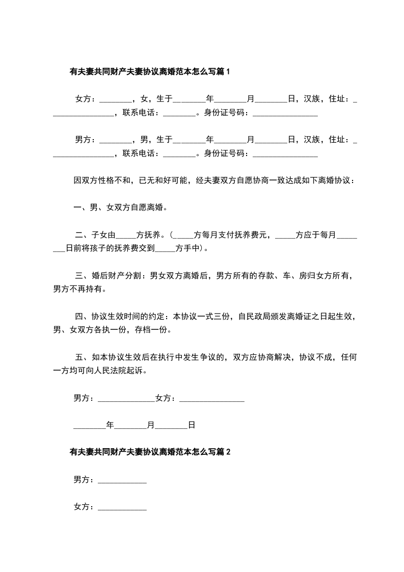有夫妻共同财产无出轨离婚协议参考样例篇2