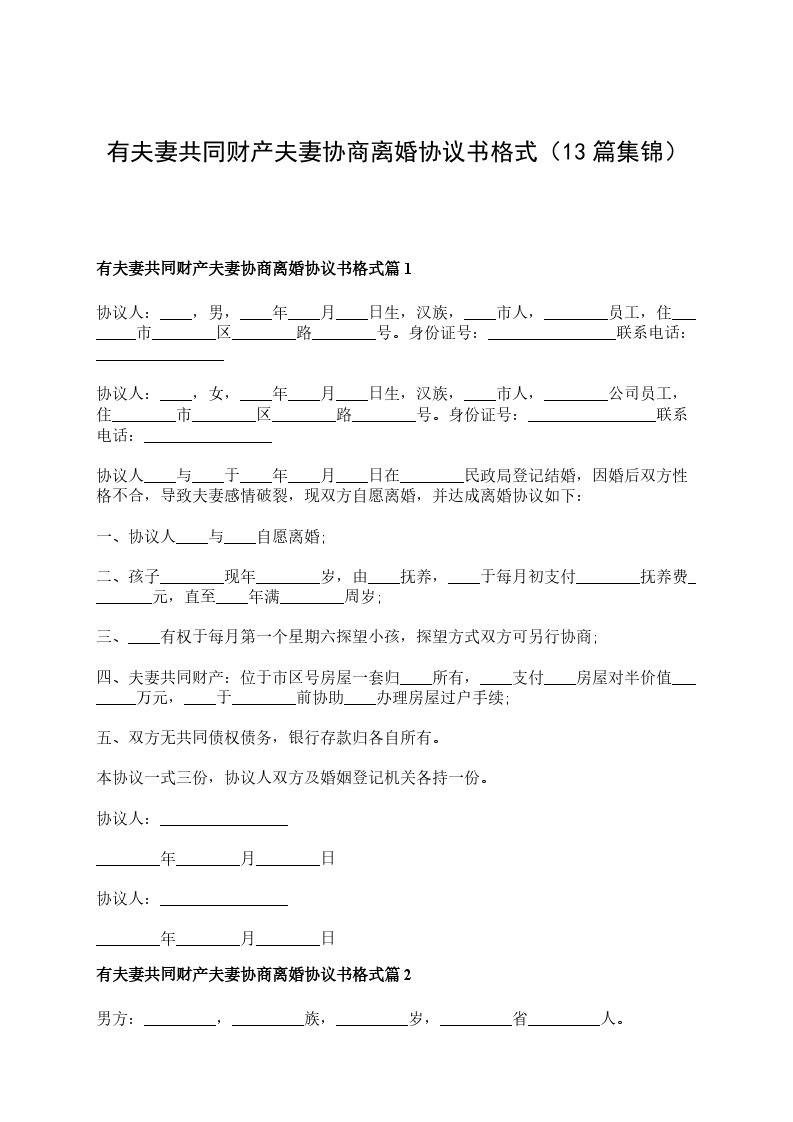 有夫妻共同财产无出轨离婚协议参考样例篇13