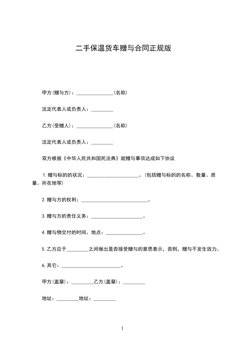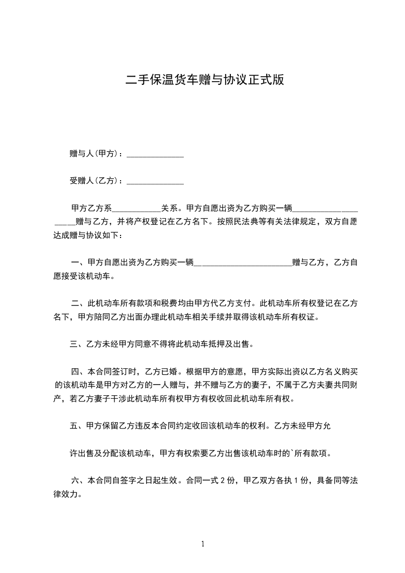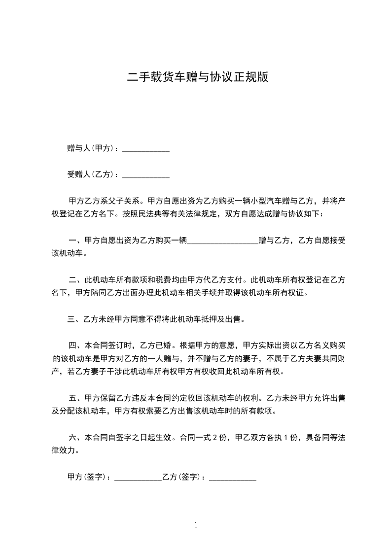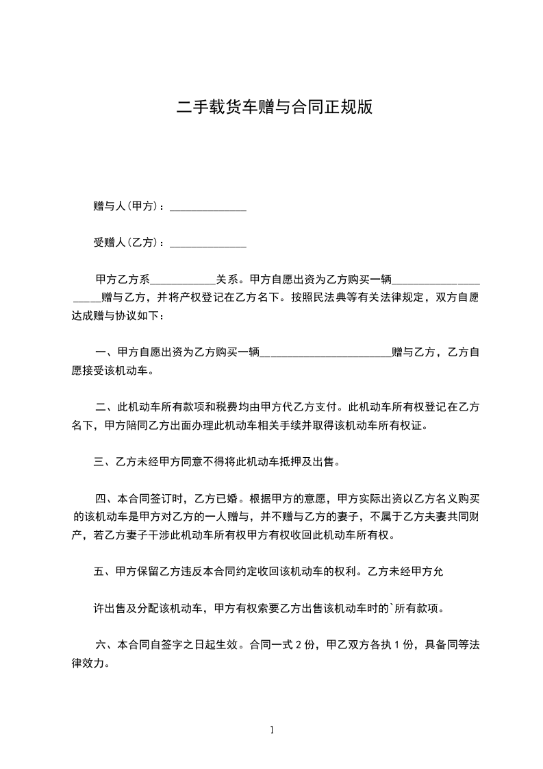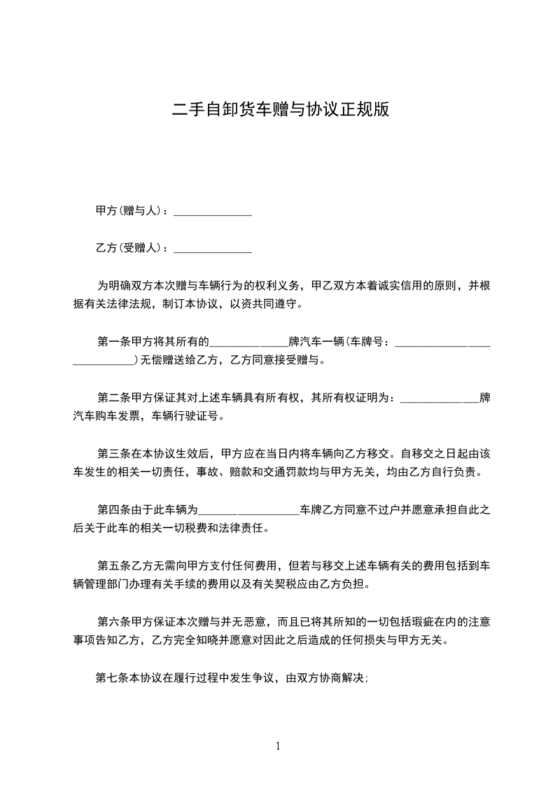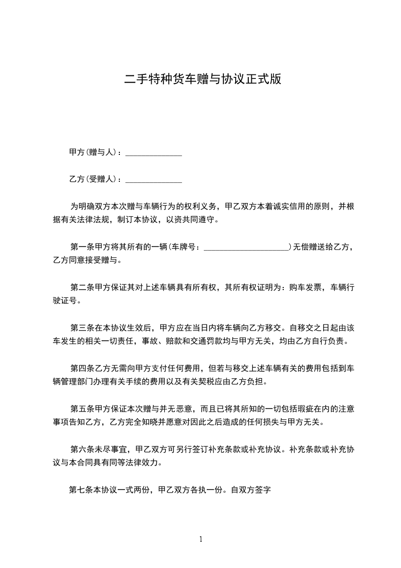 一、甲方将其所有的汽车赠送给乙方,其所有权证明为:___________________________________。