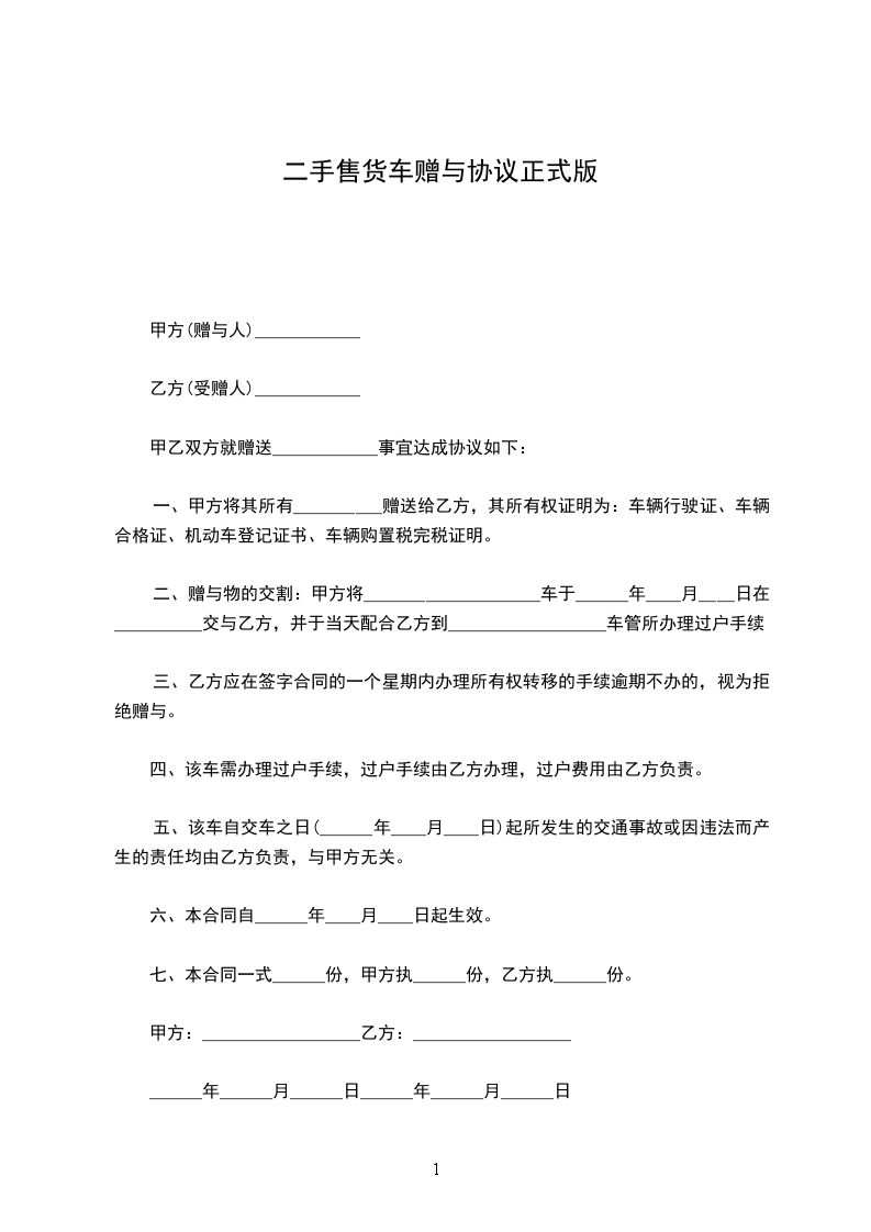 甲乙双方就赠送_____________________汽车事宜达成协议如下: