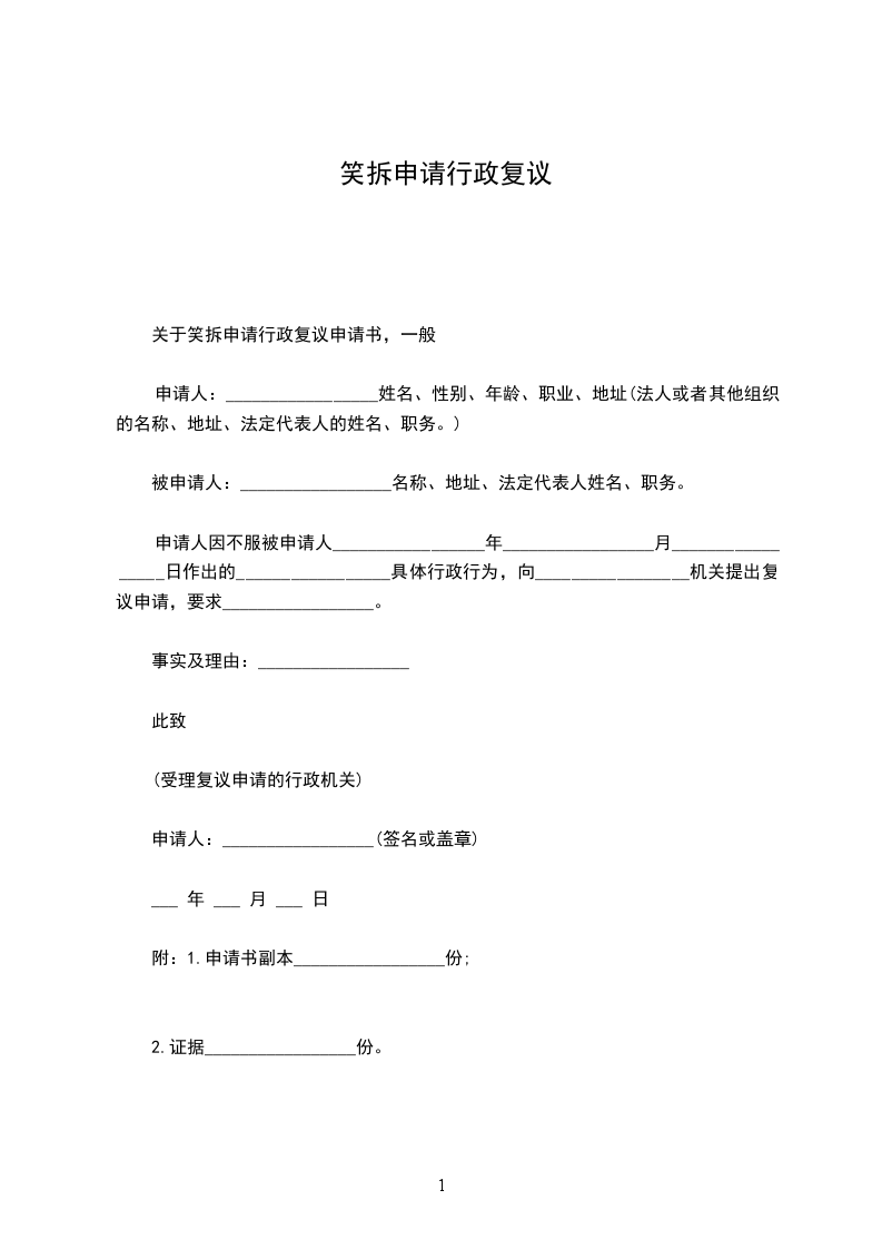 关于笑拆申请行政复议申请书,一般