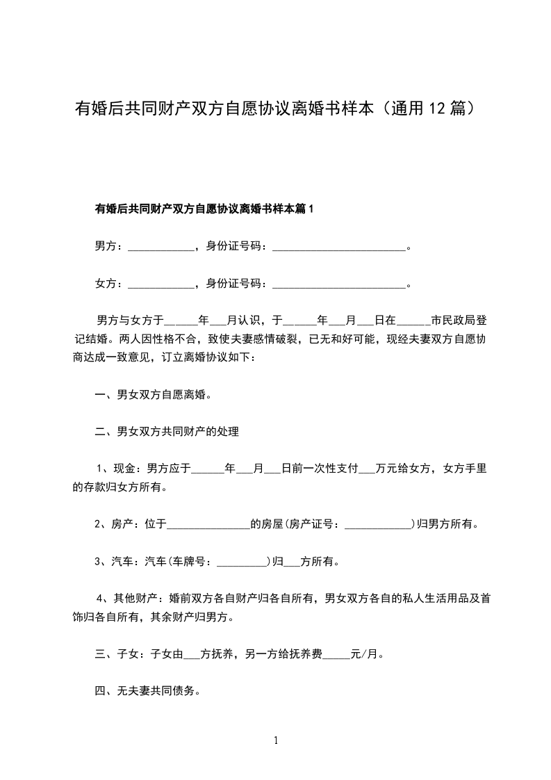 有婚后共同财产双方自愿协议离婚书样本篇12