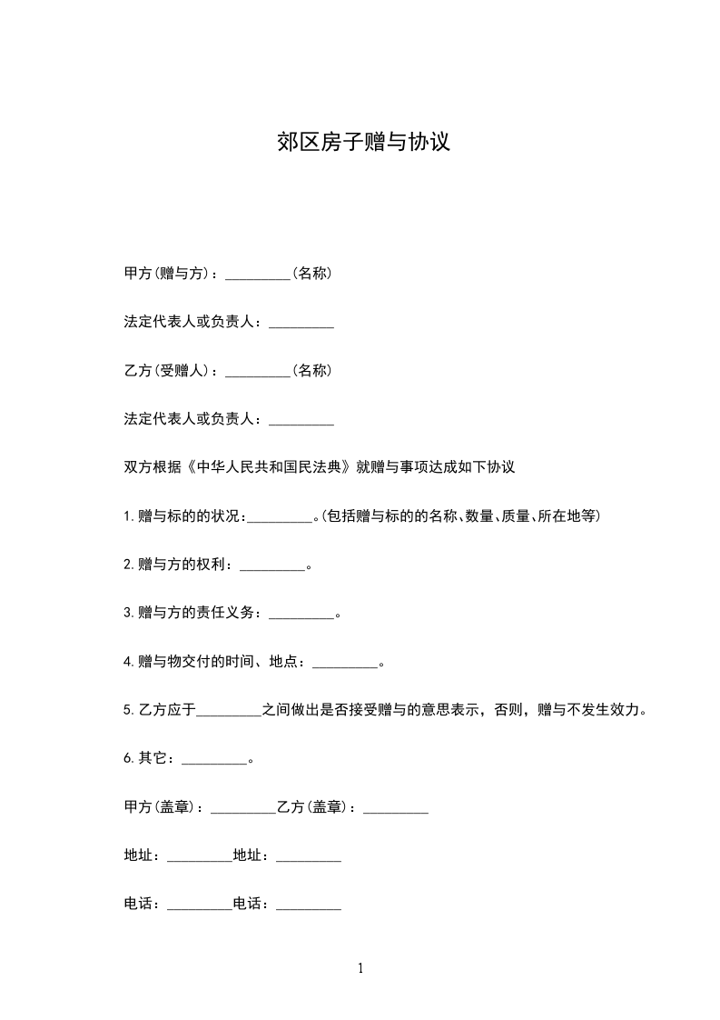 郊区房子赠与协议