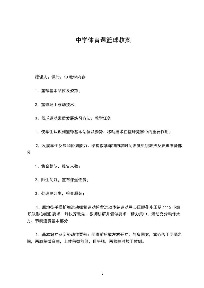1、使学生认识到篮球基本站位及姿势、移动技术在篮球竞赛中的重要作用;