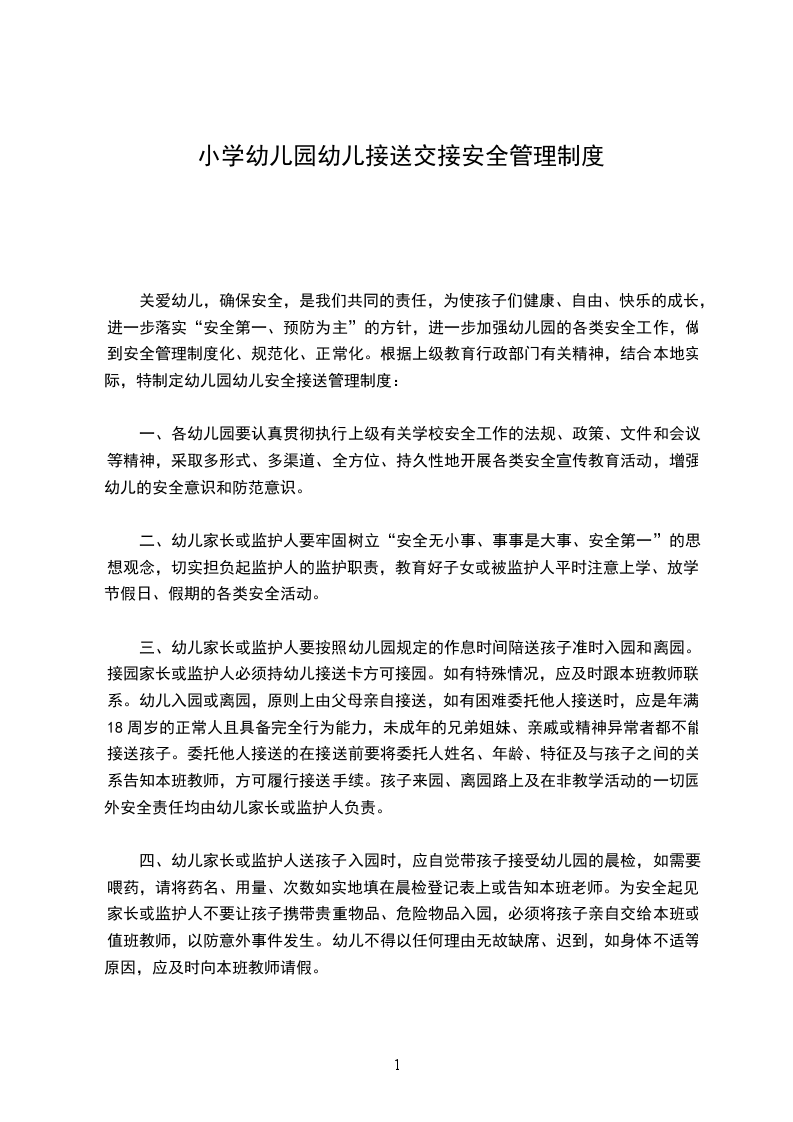 一、请家长每天按规定时间送孩子来园,为了孩子的平安,入园时必需将孩子送到本班或值班老师手中,并当面交接,不要让孩子自行回教室导致在园内玩耍,以防意外发生。在将孩子交与老师之前,一切平安问题由家长负责。