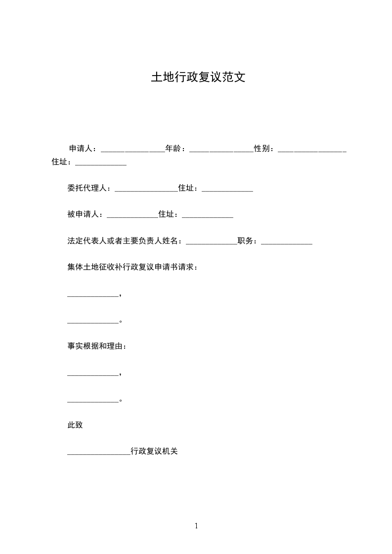 集体土地征收补行政复议申请书请求: