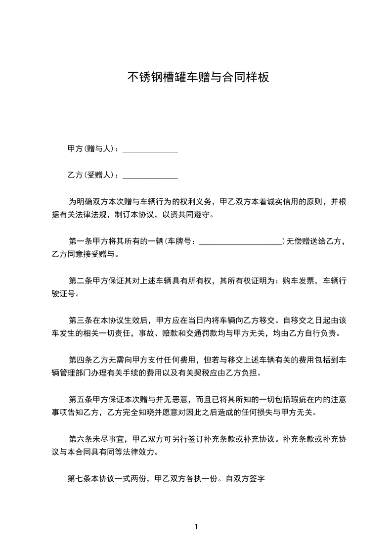 第一条甲方将其所有的______________牌汽车一辆(车牌号:____________________________)无偿赠送给乙方,乙方同意接受赠与。