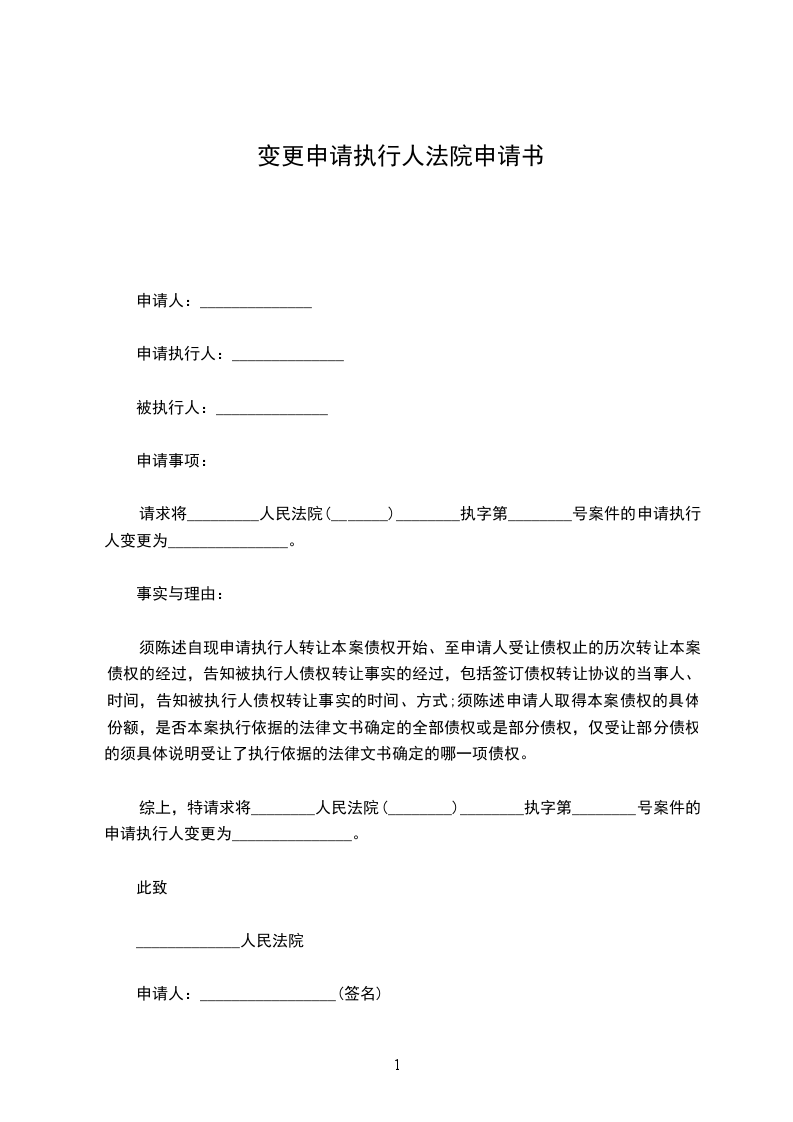 综上,特请求将________人民法院(________)________执字第________号案件的申请执行人变更为_______________。