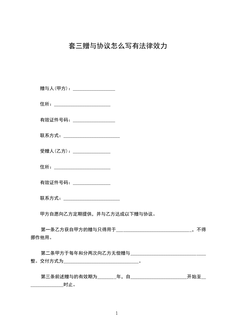 第三条前述赠与的有效期为________年,自________________________开始至________________时止。