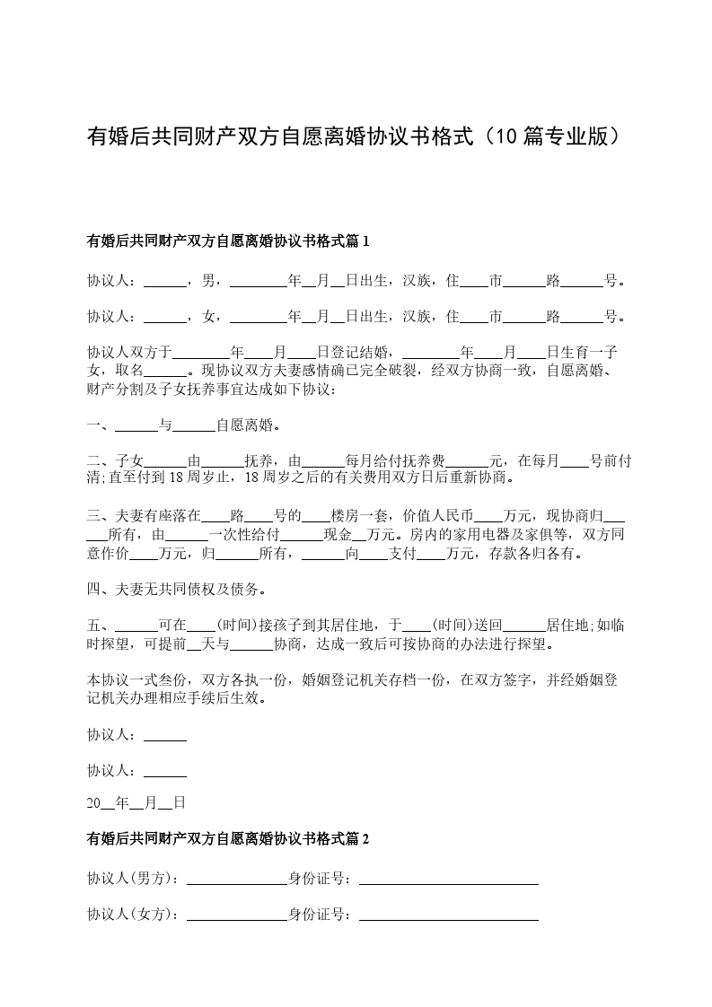 有婚后共同财产夫妻双方自愿离婚协议模板篇10
