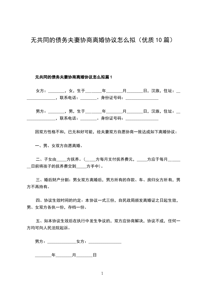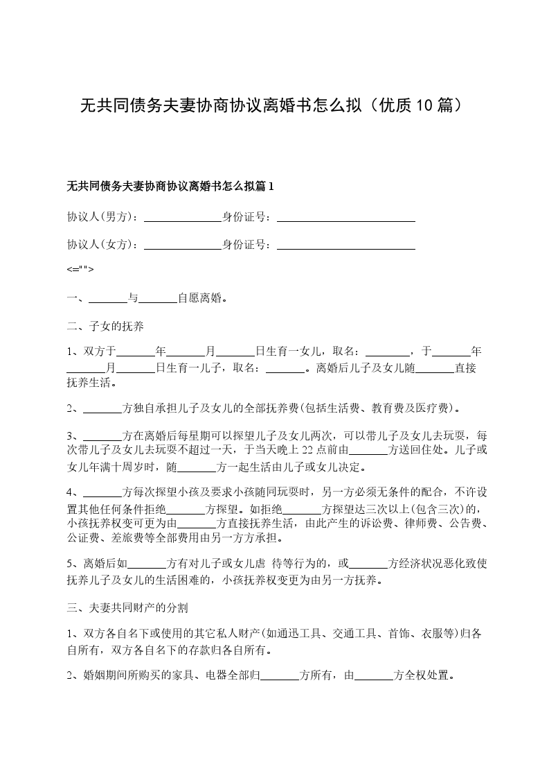 无共同债务夫妻协商协议离婚书怎么拟篇10
