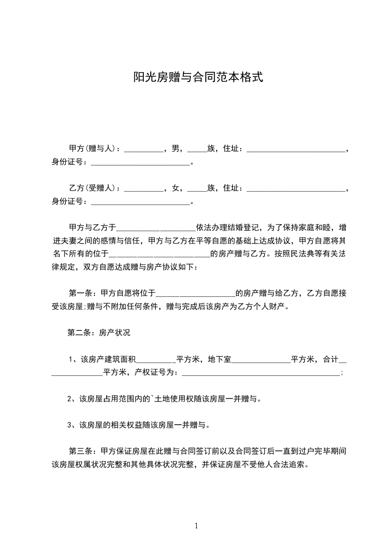 该房产占用范围内的土地使用权随该房产一并赠与乙方一人。该房产的相关权益随该房产一并赠与乙方一人。