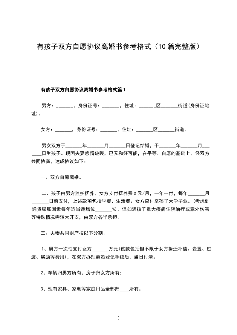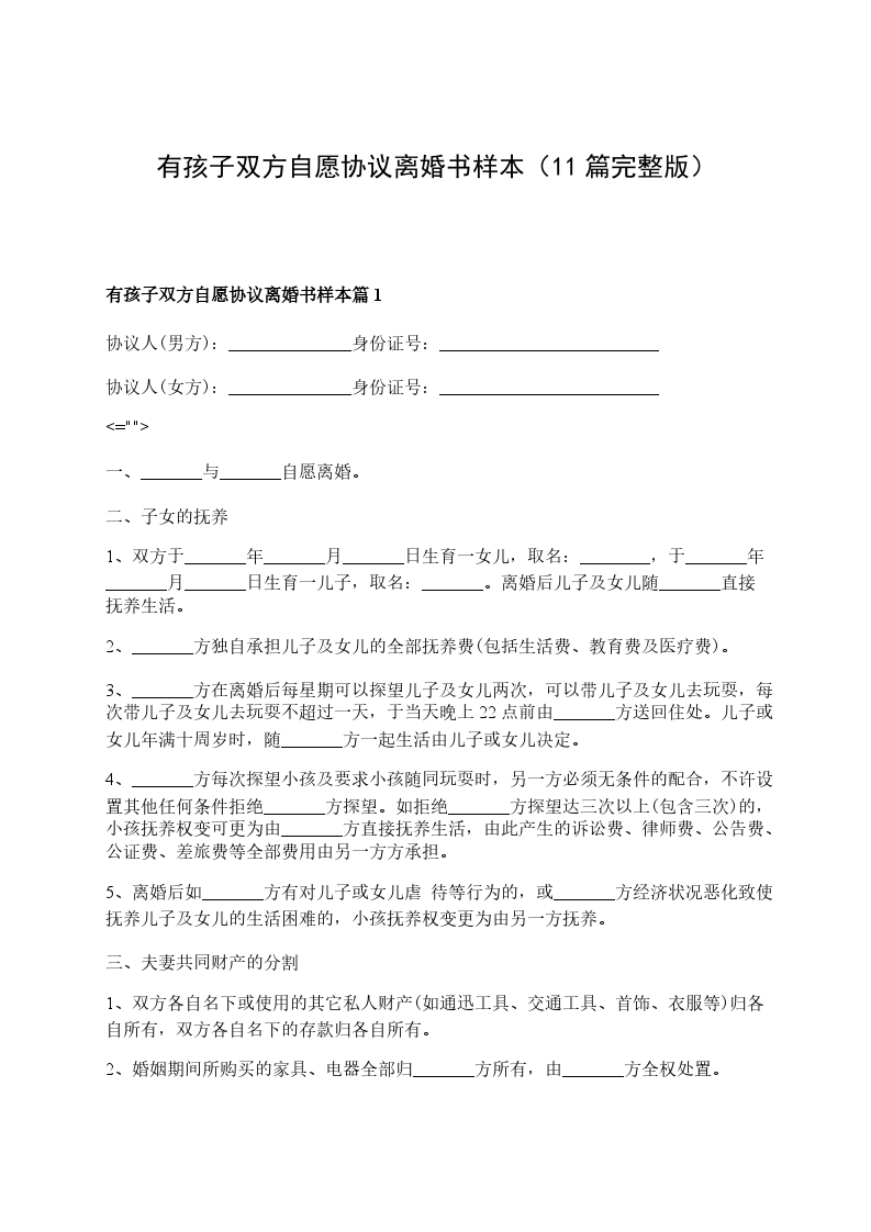 有孩子双方自愿协议离婚书参考格式篇9