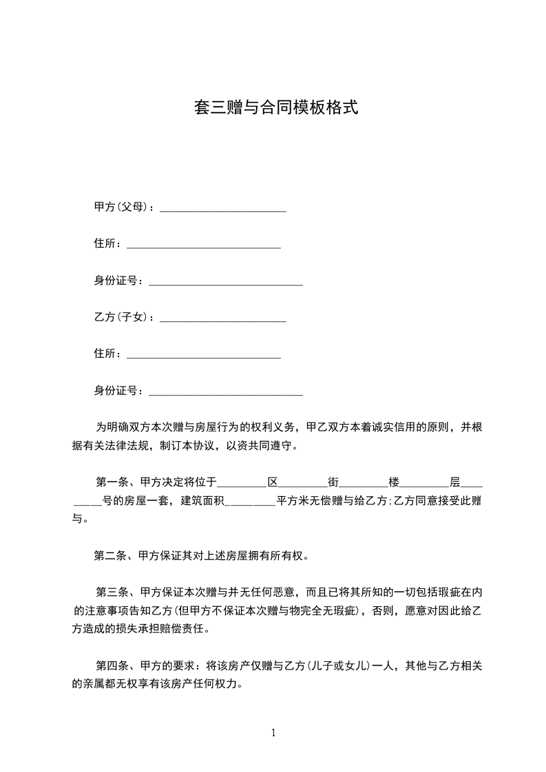 1.赠与标的的状况:_____________________。(包括赠与标的的名称、数量、质量、所在地等)