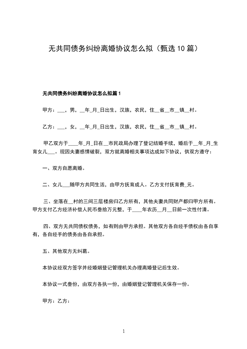 无债务纠纷双方自愿协议离婚范本怎么拟篇10