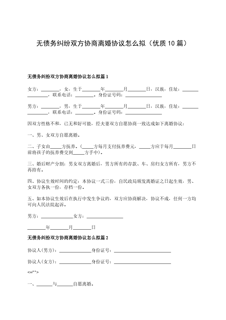 无债务纠纷双方自愿协议离婚范本怎么拟篇9
