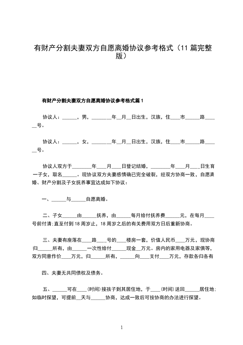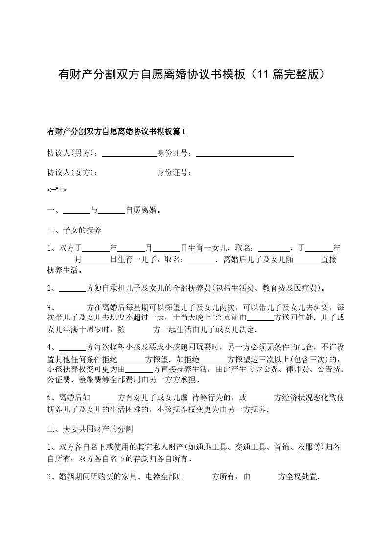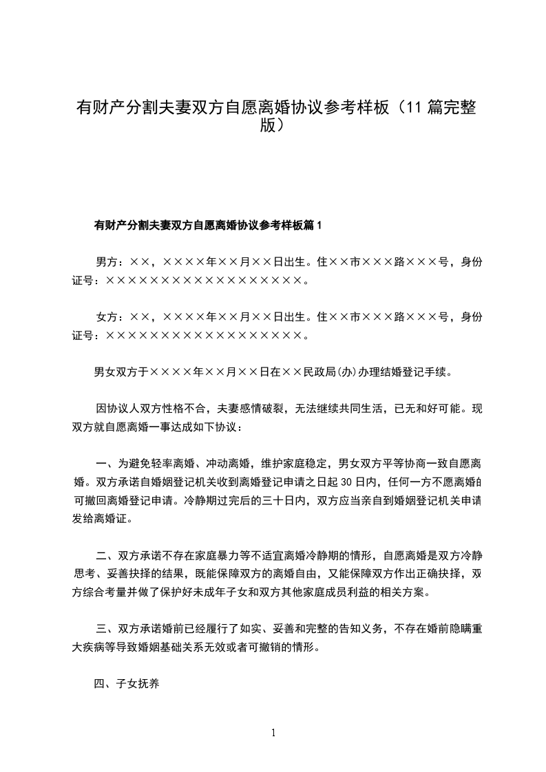 有财产分割夫妻双方自愿协议离婚书参考样例篇11