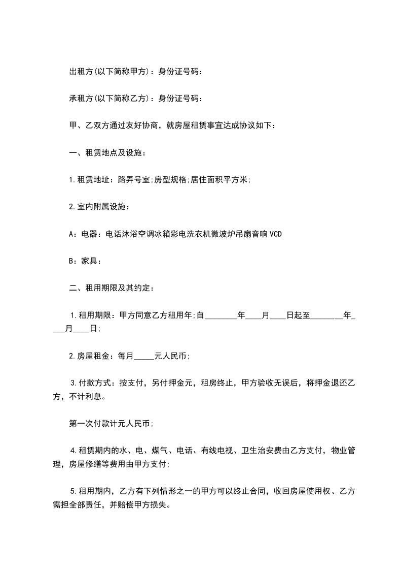 5.租用期内,乙方有下列情形之一的甲方可以终止合同,收回房屋使用权、乙方需担全部责任,并赔偿甲方损失。