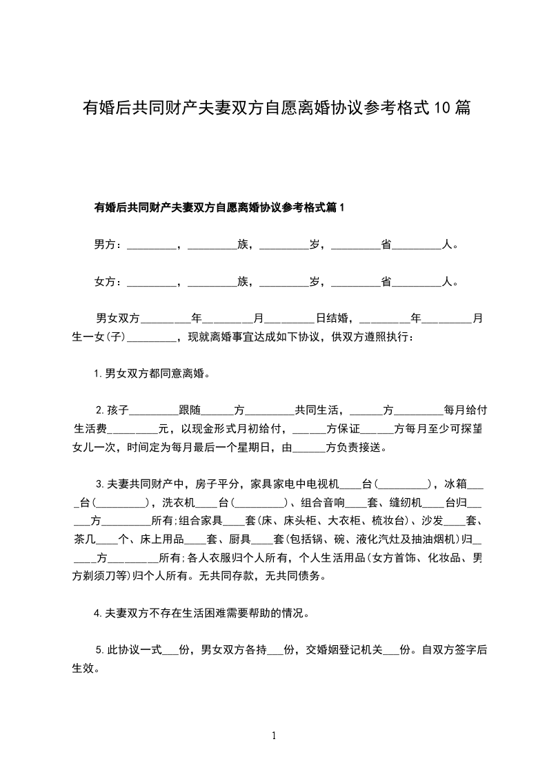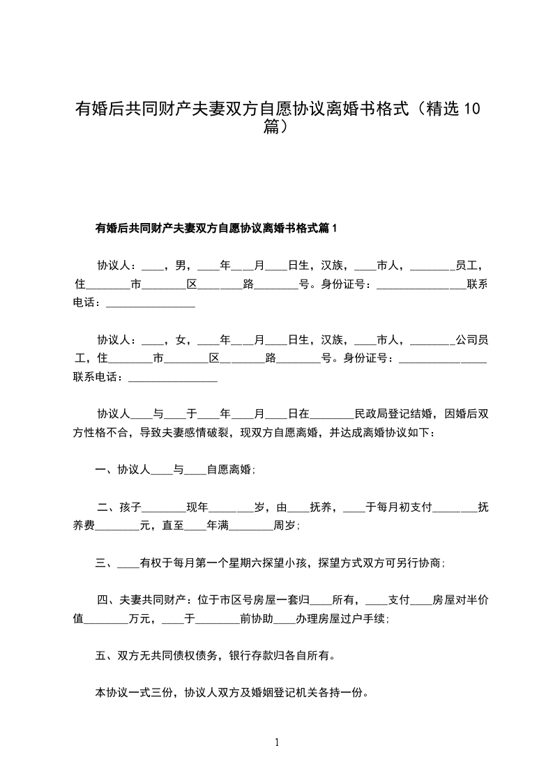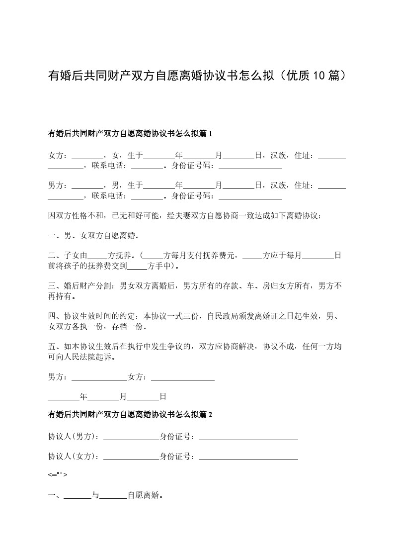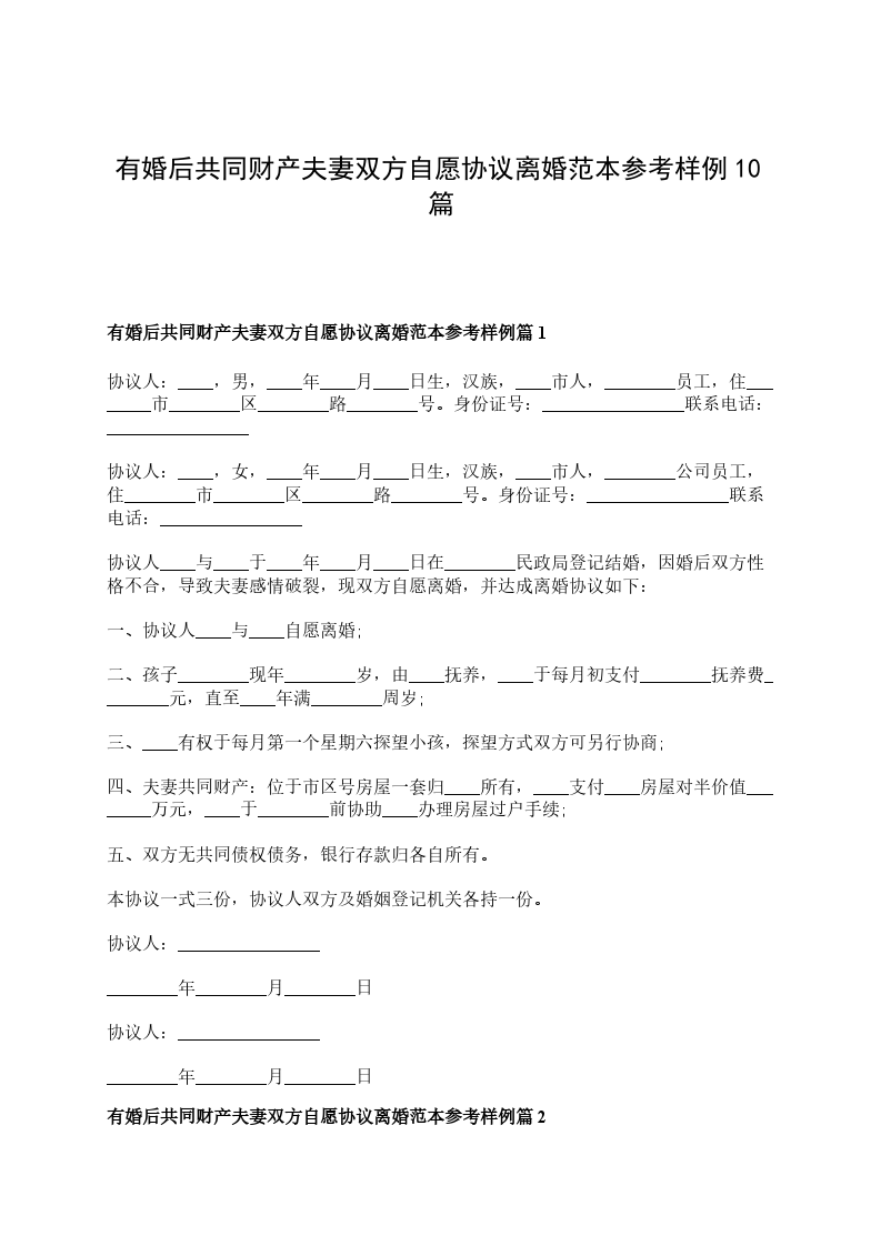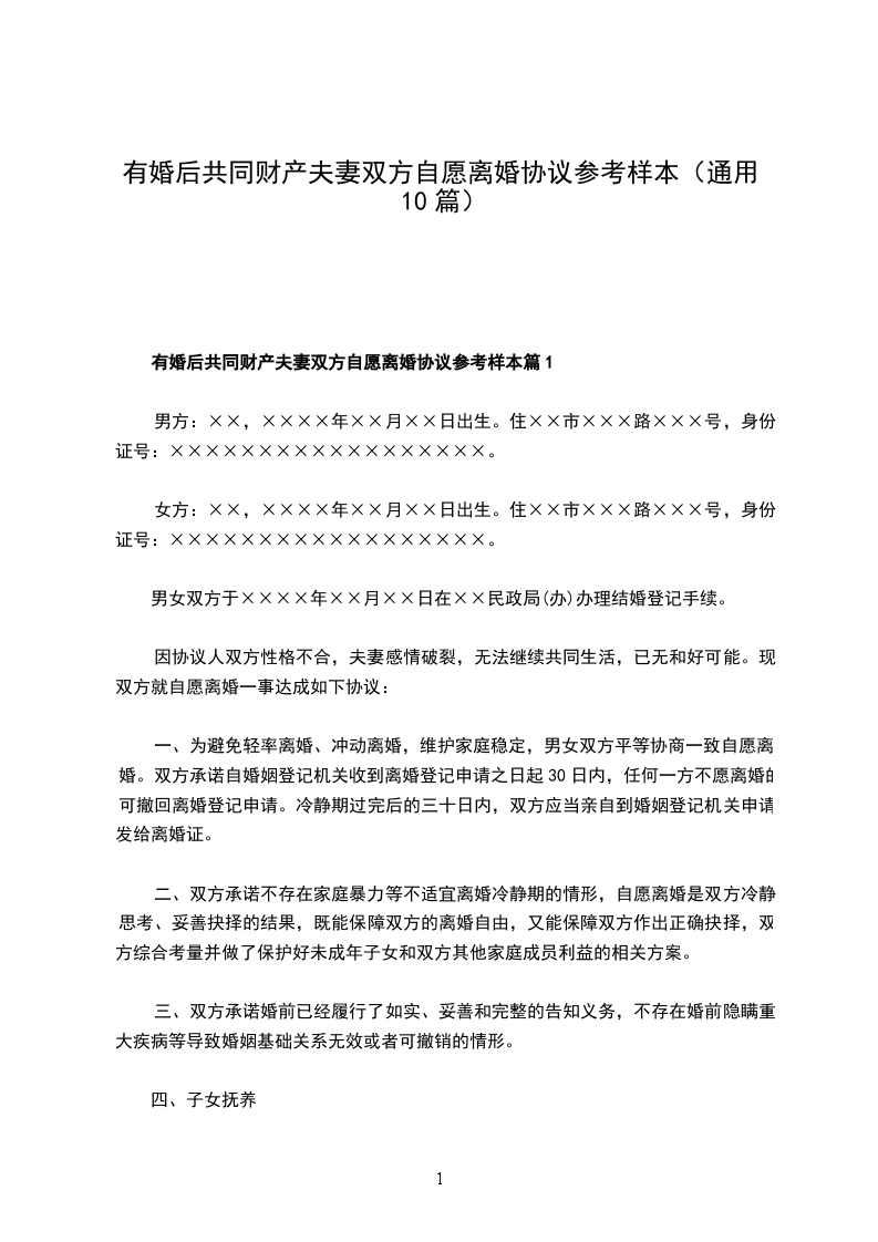 有婚后共同财产双方自愿离婚协议书怎么写篇10