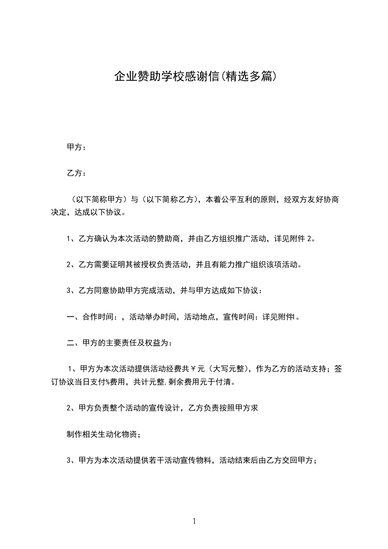 感谢信格式 【概念解说】 感谢信是一种礼仪文书,用 商务活动中的很多非协议的合同中,一方受惠 另一方,应准时地表达谢忱,使对方在付出劳动后得到心理上的收益,它是一种不行少的公关手段。 【格式内容】 感谢信的写作格式是书信体。写作时应篇幅短,中文200字左右即可;对收信人为自己做的好事了然 胸,不要忘了什么;把对方给你带来的好处都写清晰,不要模糊其词;表示感谢的话要合乎商家往来的习惯,语气不应过 卑屈。谢意之外,假如允许别人什么应切实可行,能说到做到。 赞助感谢信格式