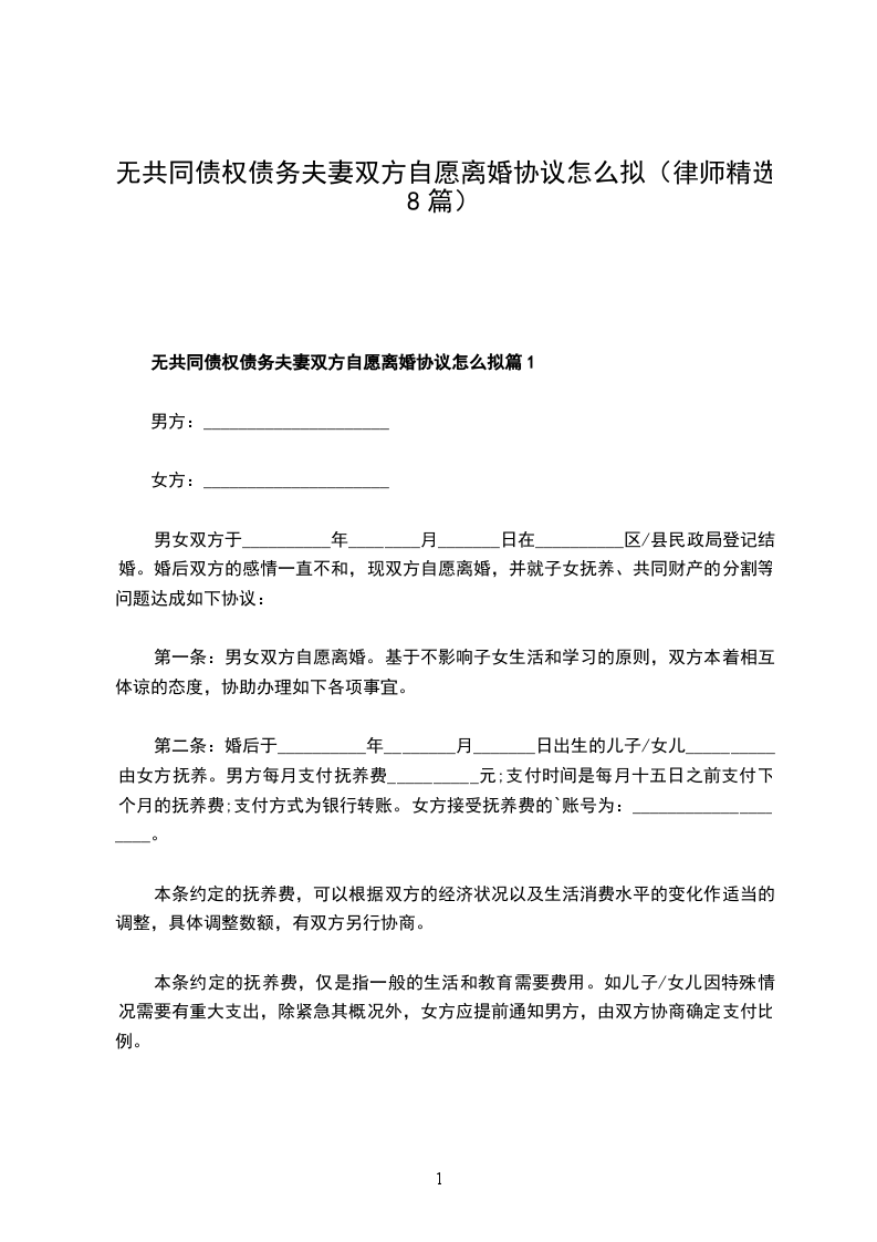 无共同债权债务夫妻双方自愿离婚协议怎么拟篇8