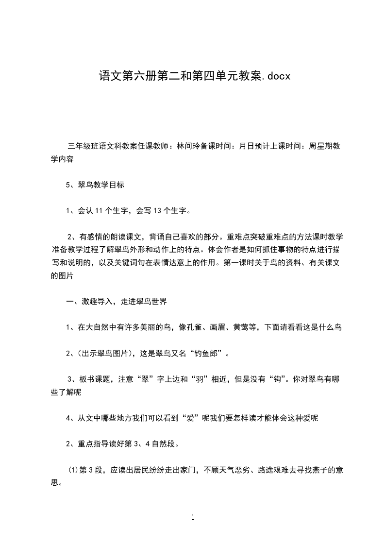 二、初读课文,自定目标1请同学们自由读文,结合本单元学习重点和课文前的提示,自己来确定本节课的学习目标。2全班交流,确定本节课的共同学习目标。