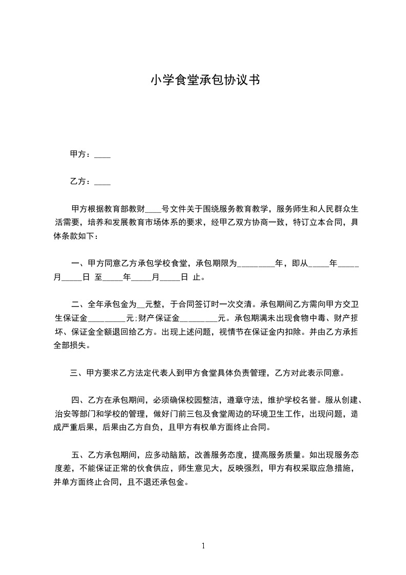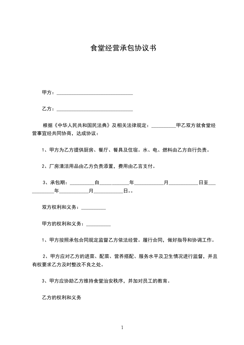 7、若乙方将所承包的食堂转包给他人经营,则甲方有权中止合同。乙方的风险抵押金及所交承包费不予退还外,且停聘乙方或乙方担保人三年。