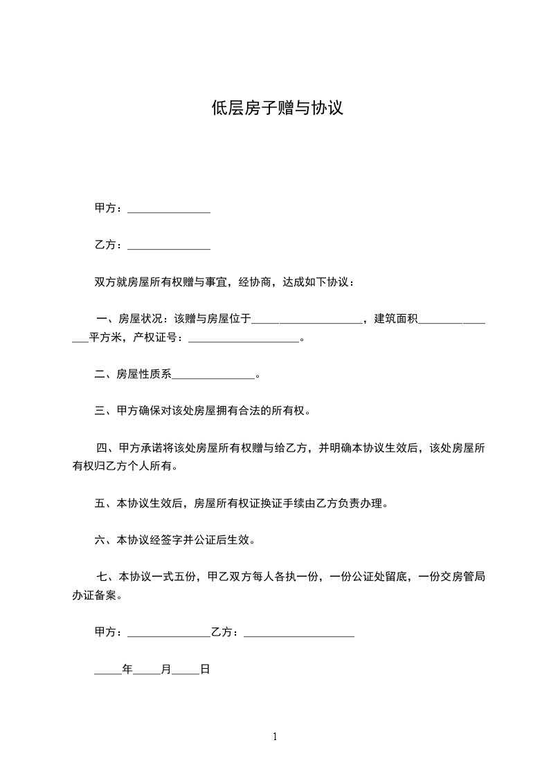 双方就房屋所有权赠与事宜,经协商,达成如下协议: