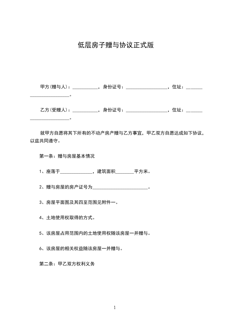 一、房屋状况:该赠与房屋位于____________________,建筑面积_______________平方米,产权证号:____________________。