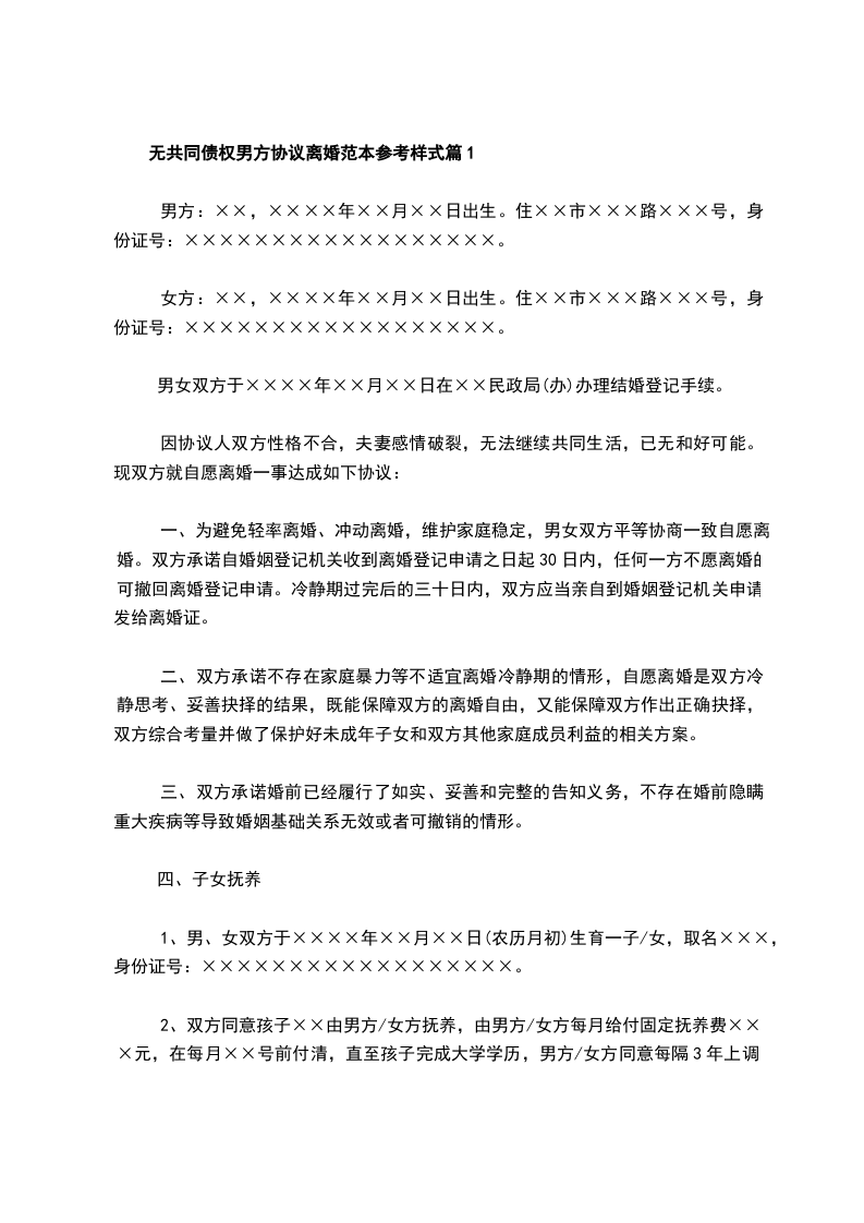 1、男、女双方于××××年××月××日(农历月初)生育一子/女,取名×××,身份证号:××××××××××××××××××。