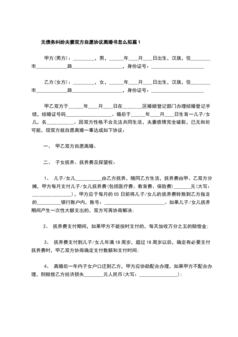 无债务纠纷夫妻双方自愿协议离婚书怎么拟篇5