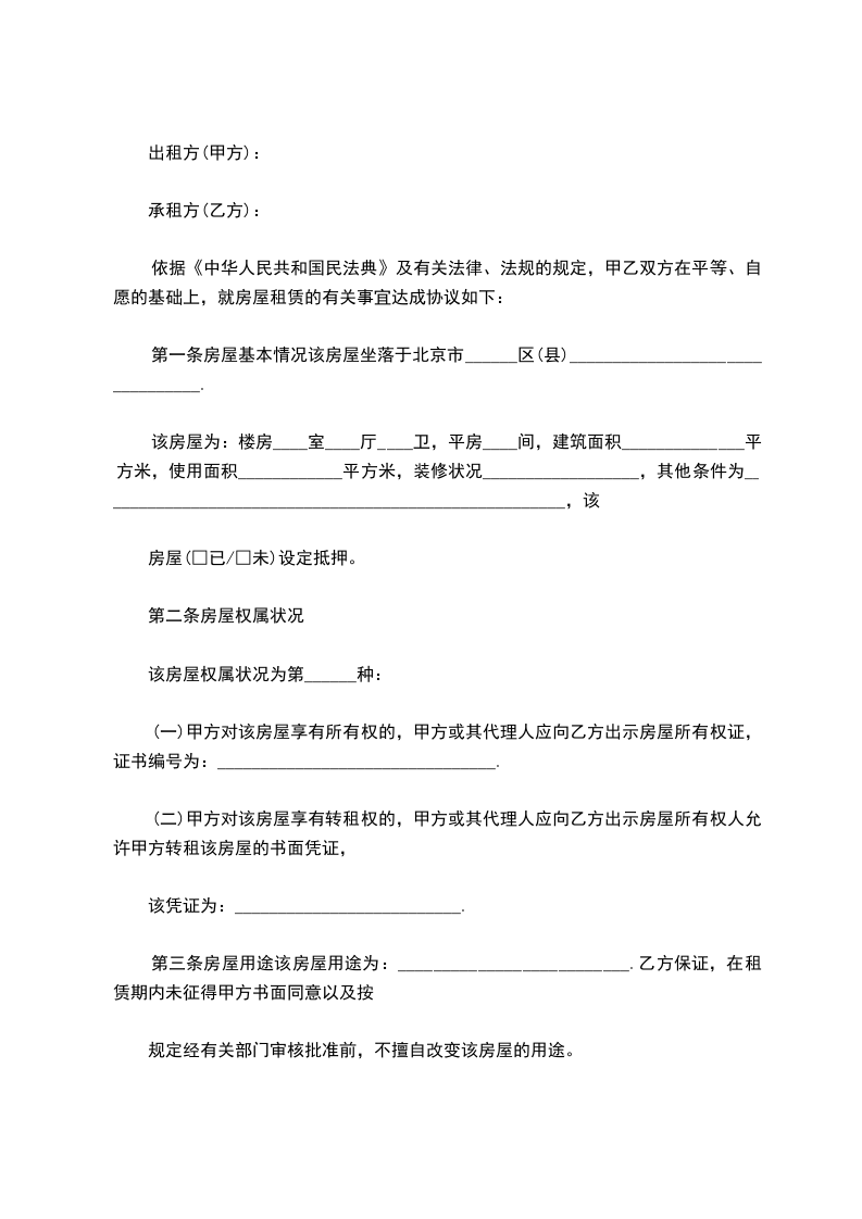第一条房屋基本情况该房屋坐落于北京市______区(县)________________________________.