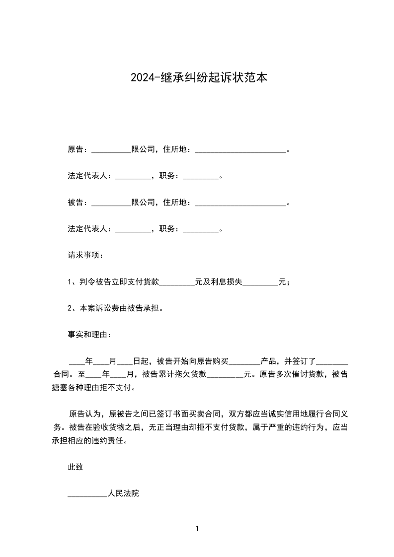 被告:__________限公司,住所地:_______________________。