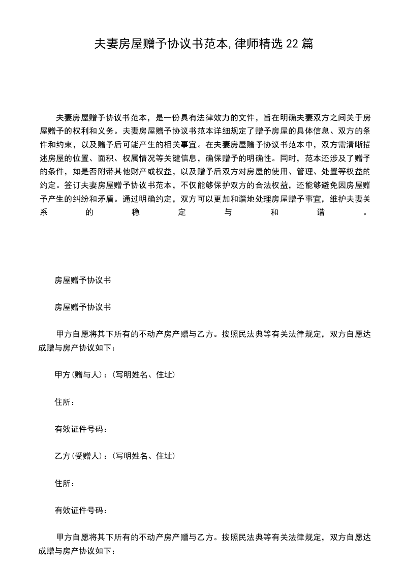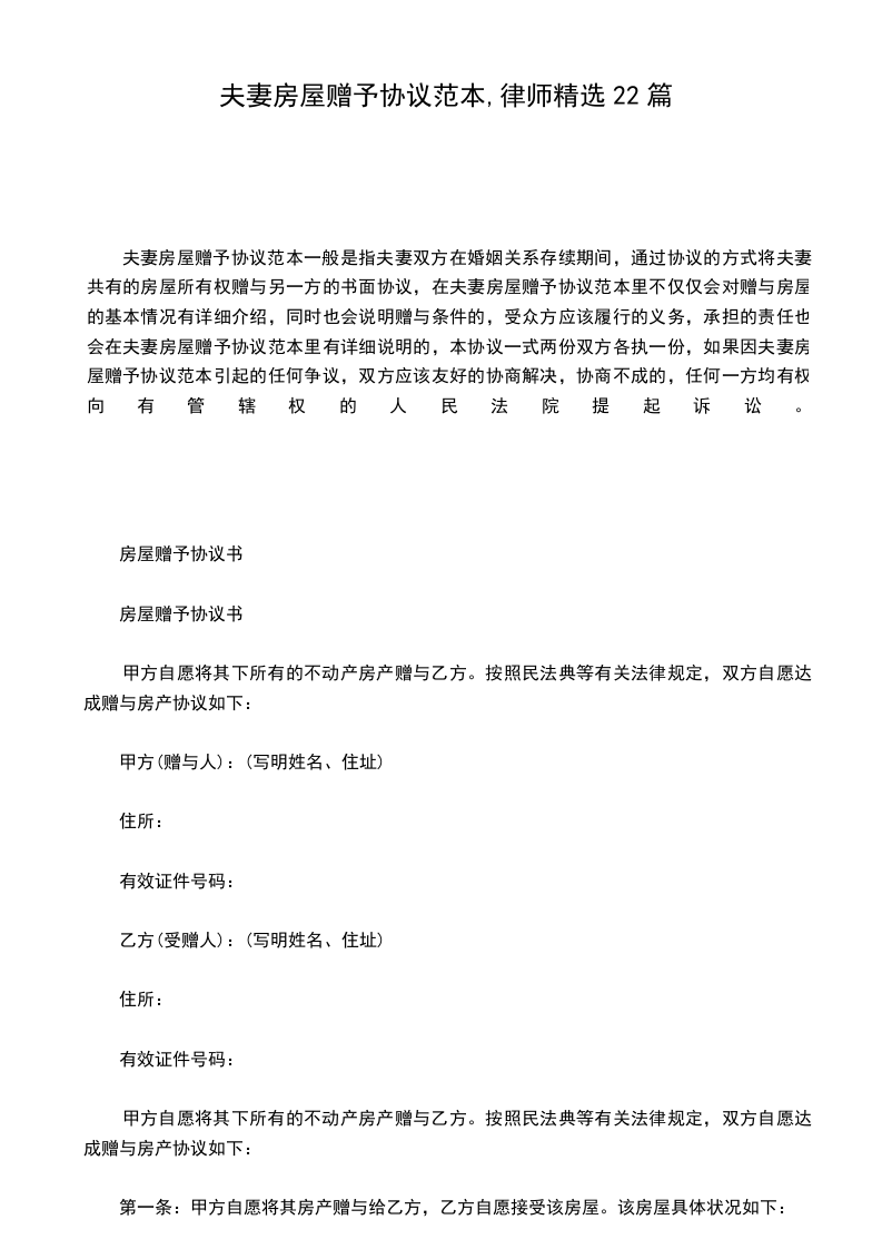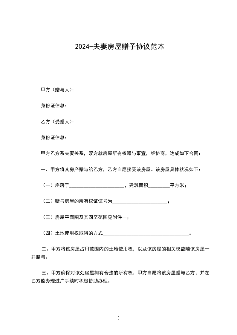 甲方乙方系夫妻关系,双方就房屋所有权赠与事宜,经协商,达成如下合同: