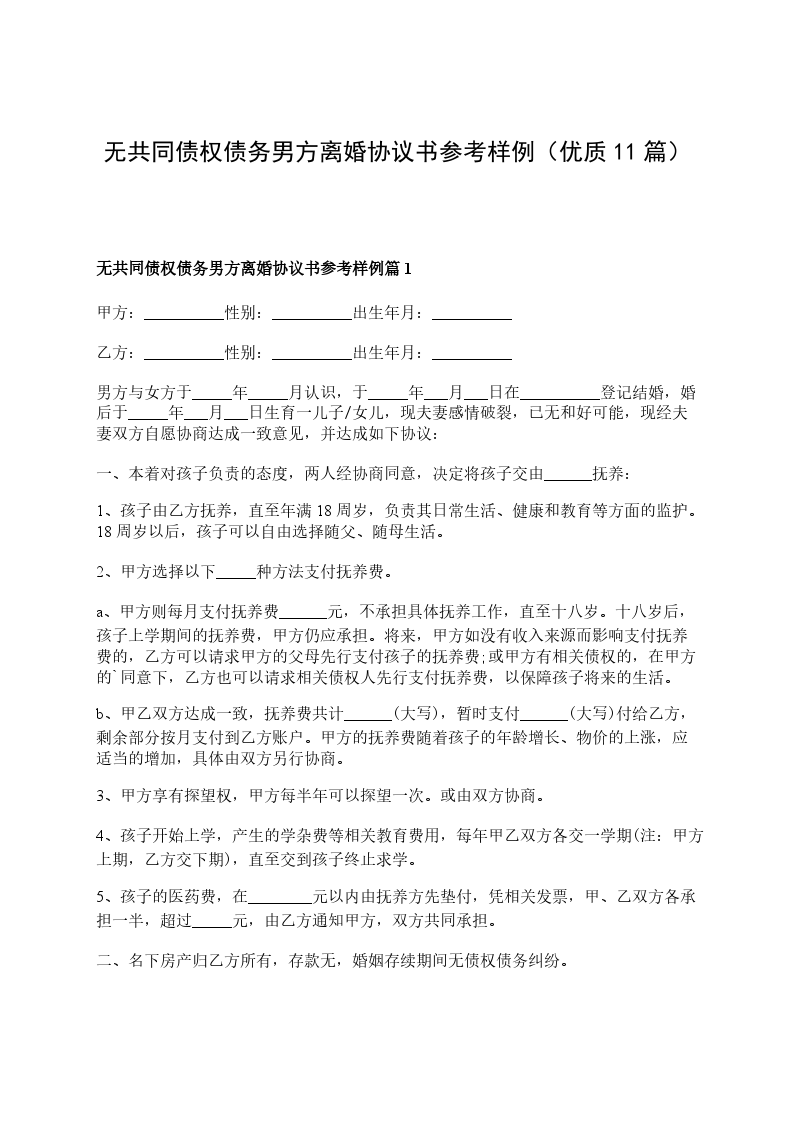 乙方:(男方):_______________,男,汉族,生于_____年__月__日,住________________________________