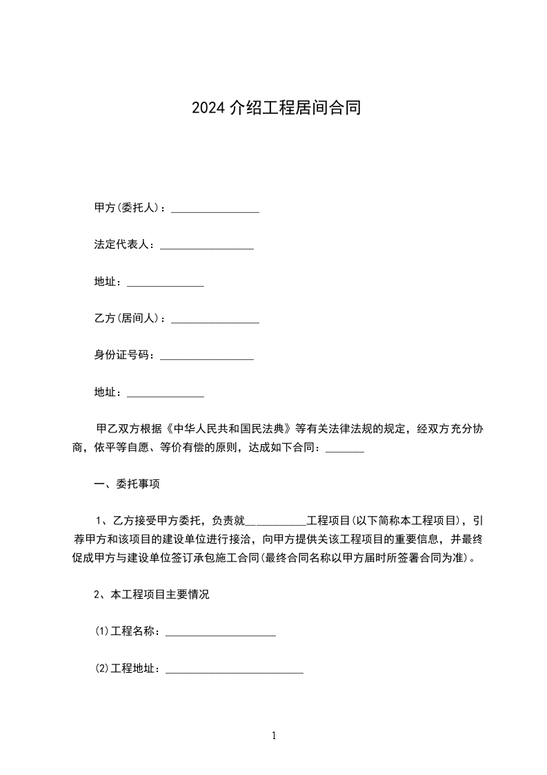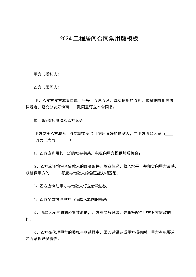 甲方委托乙方联系、介绍需要资金且信用良好的借款人,向甲方借款人民币_________万元(大写:_____)