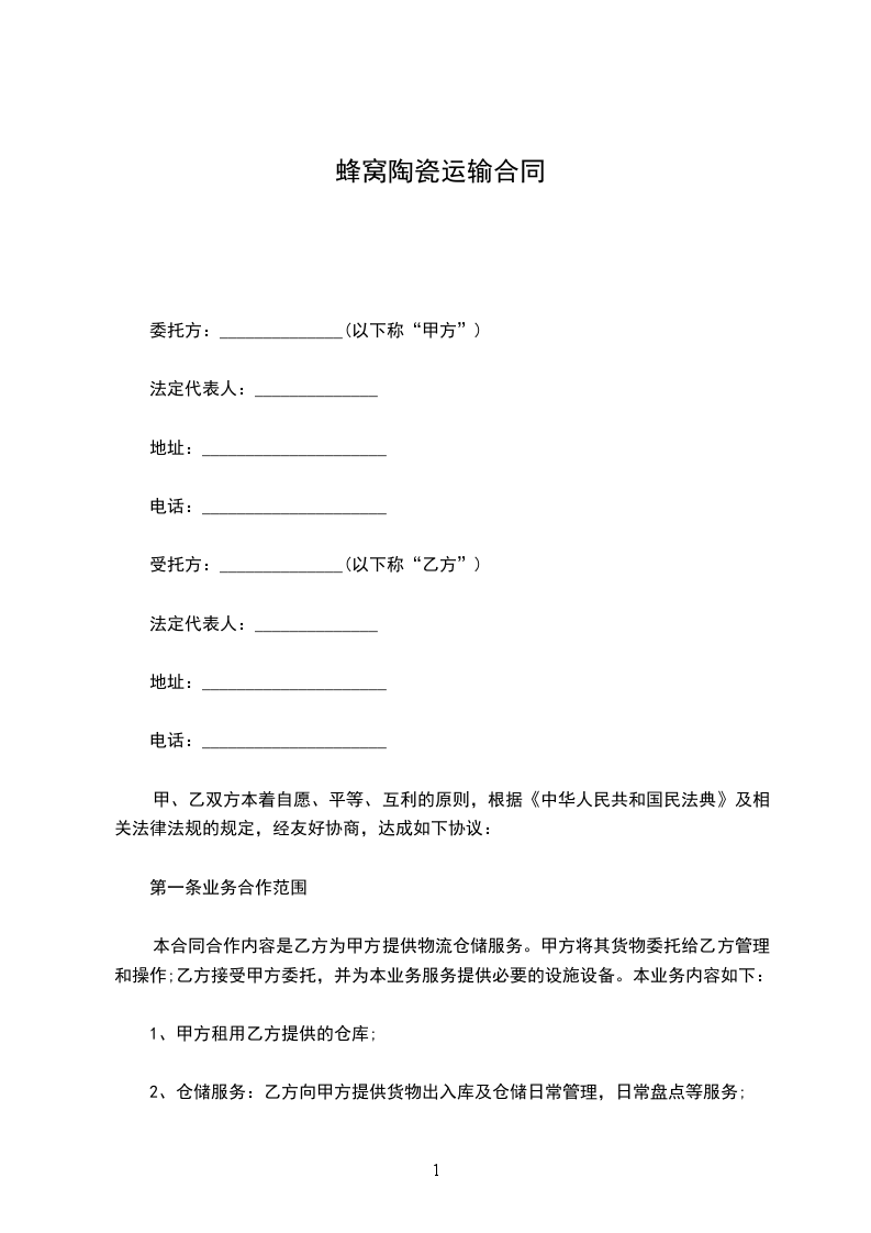 陶瓷岩运输合同