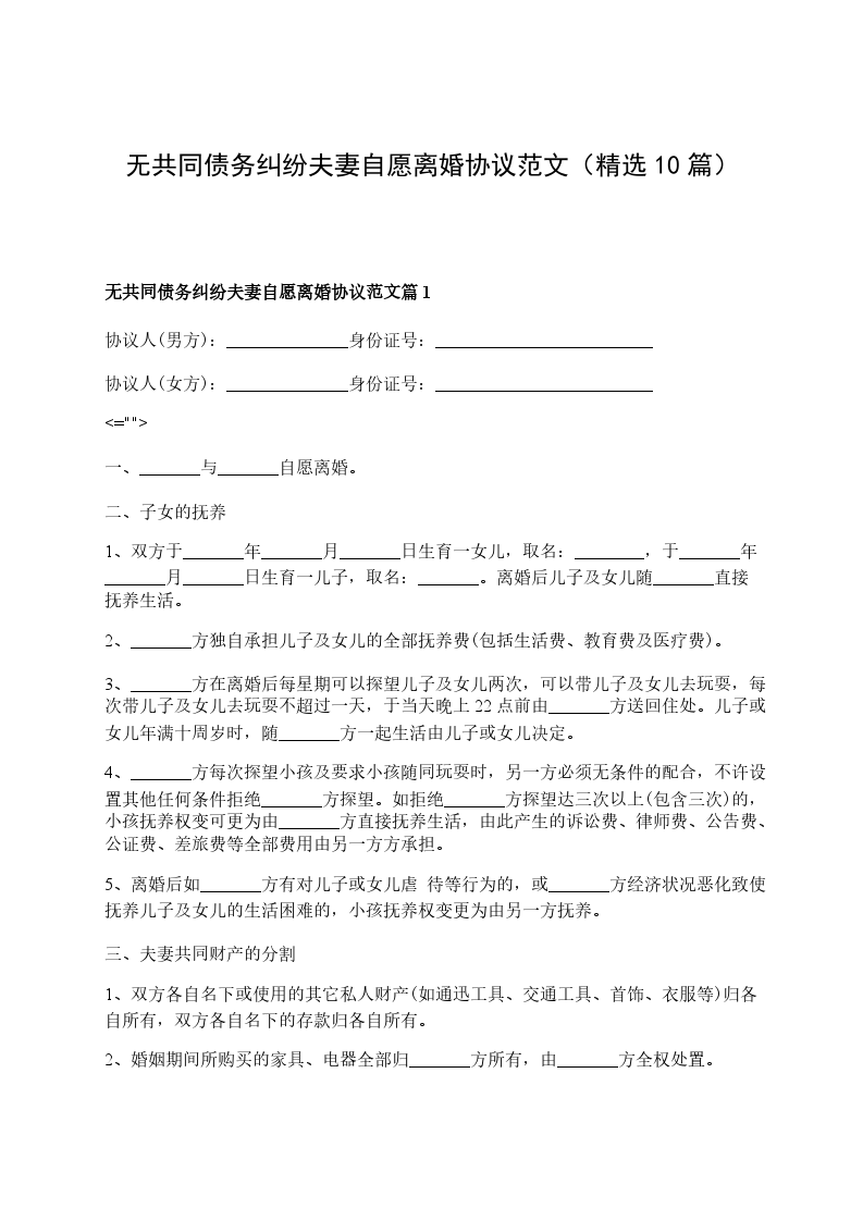 无共同债务纠纷夫妻自愿离婚协议范文篇10
