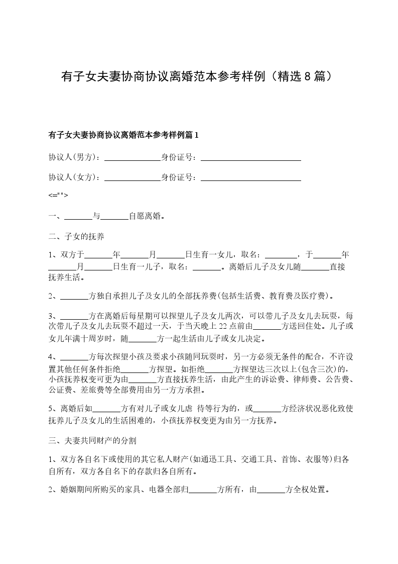 八、本协议一式三份,男、女双方各执一份,婚姻登记机关存档一份。