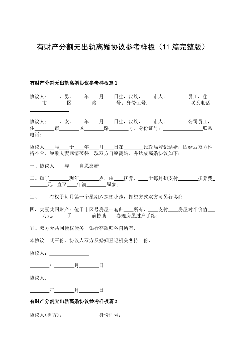 有财产分割无出轨离婚协议参考样板篇11