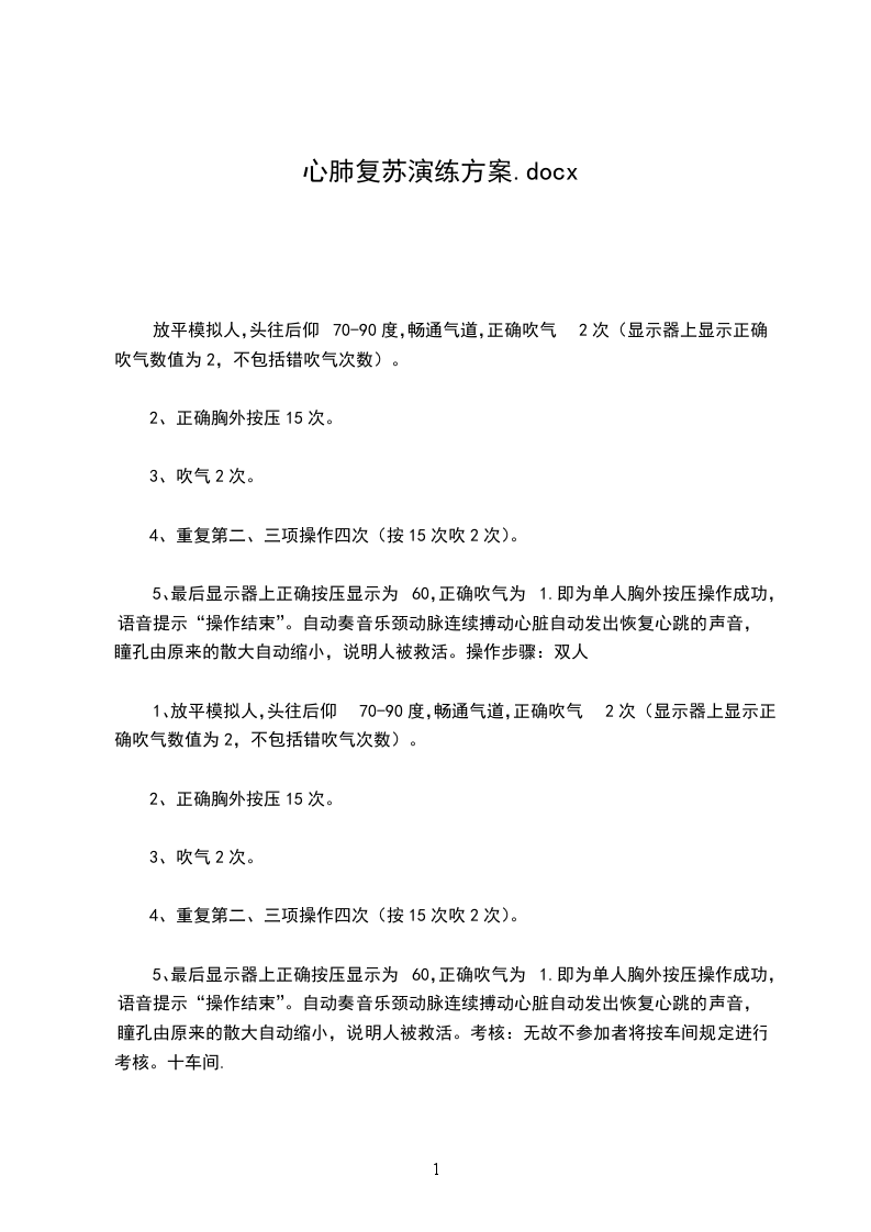 5、初期复苏的步骤:1)判断环境是否危险(Danger)(列举电击伤病人及煤气中毒病人例子)2)判断患者反应(Response)3)呼救/报警(XXX系统)(列举一个病历补充说明)4)人工循环(Circulation)5)开放气道(Airway)6)人工呼吸