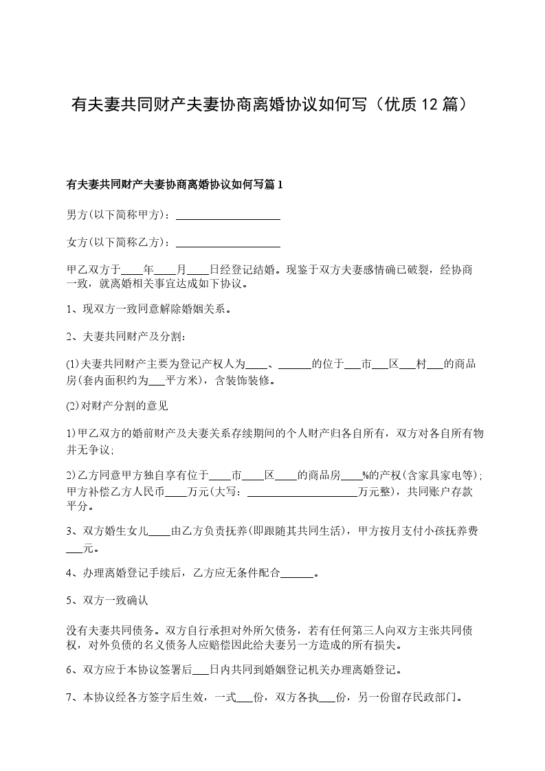 有夫妻共同财产夫妻协商离婚协议书怎么写篇12