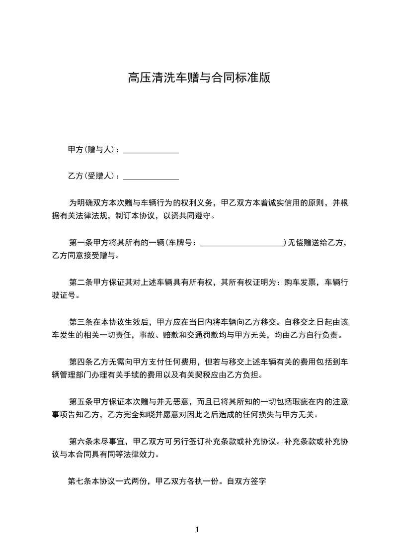 一、甲方自愿出资为乙方购买一辆________________________赠与乙方,乙方自愿接受该机动车。