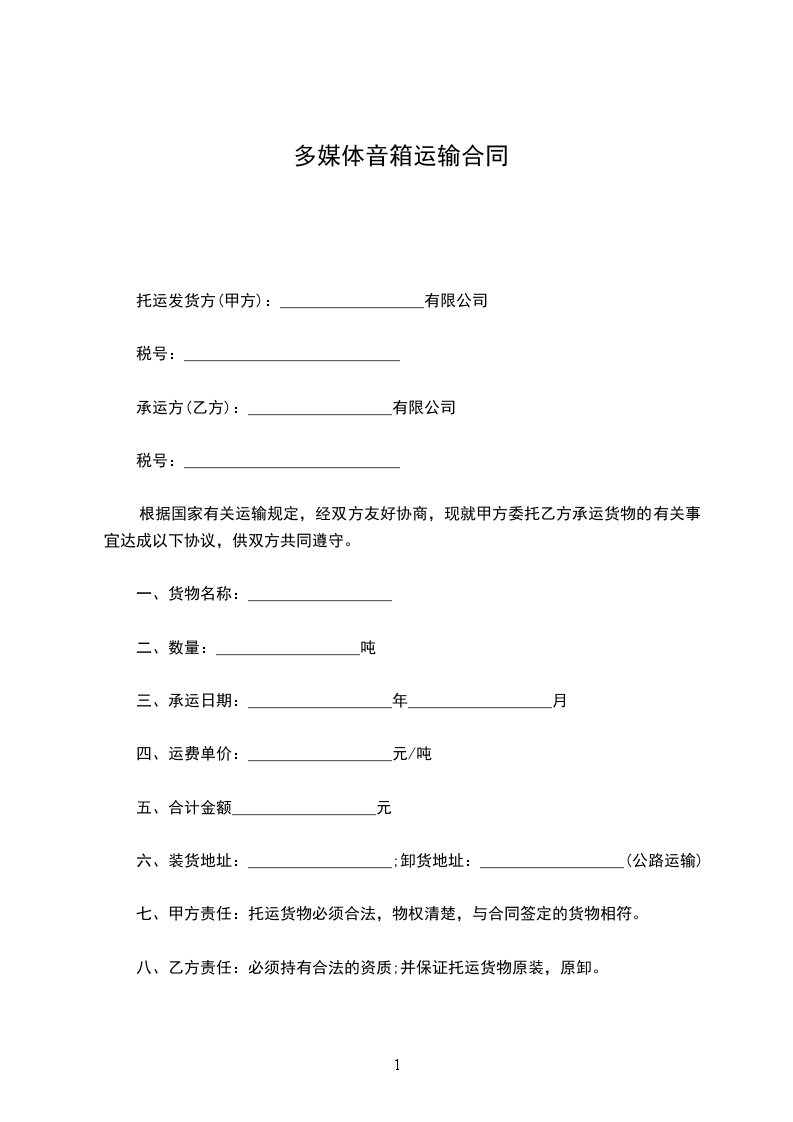 八、乙方责任:必须持有合法的资质;并保证托运货物原装,原卸。