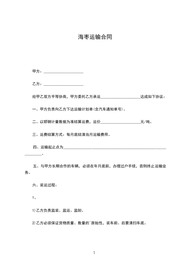 根据国家有关运输规定,经过双方充分协商,订立如下条款,双方共同遵守。