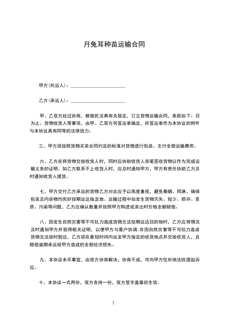 月兔耳种苗运输合同