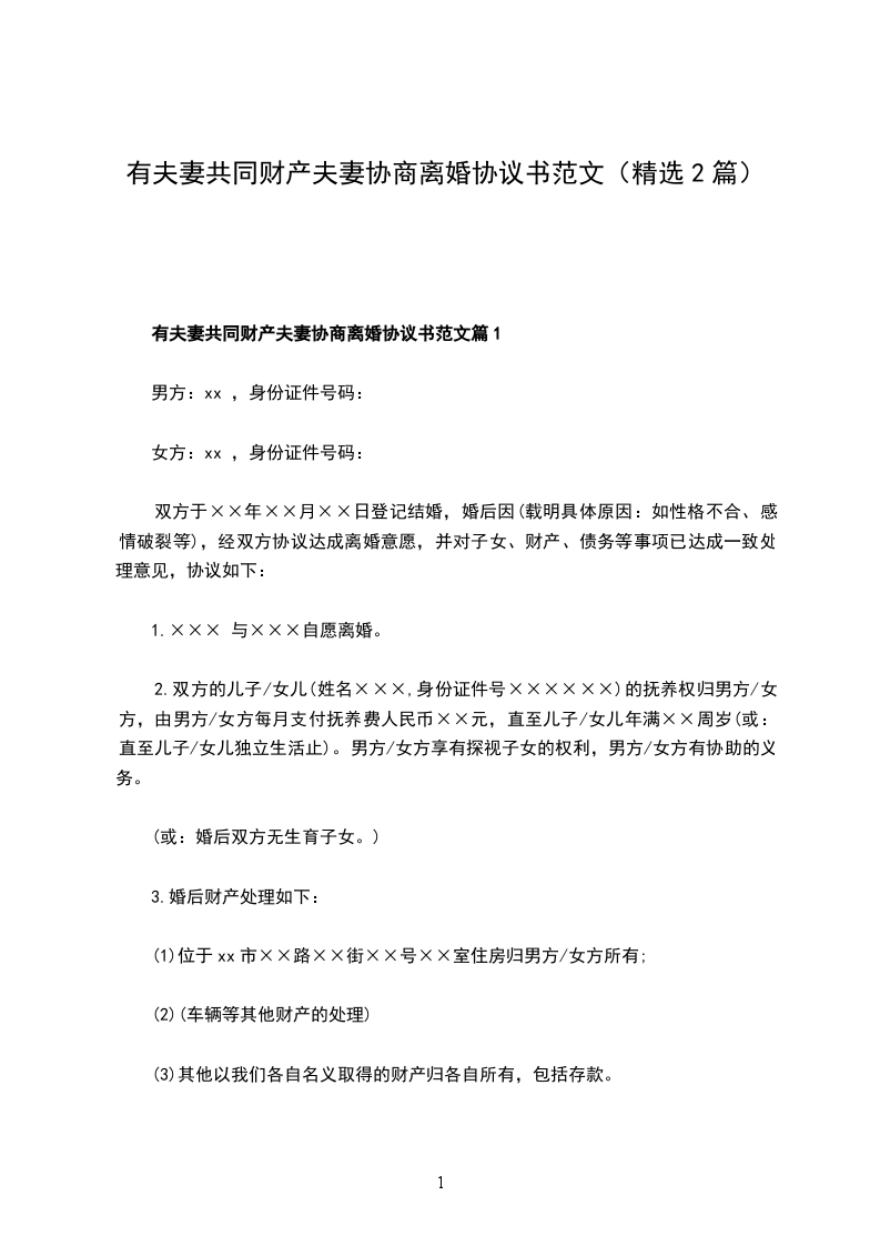 有夫妻共同财产夫妻协商离婚协议书范文篇2